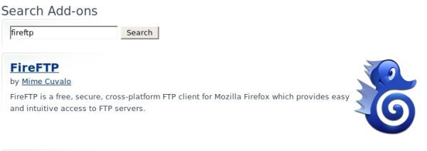 سپس در کادر Search،"fireftp" را تایپ کنید:
