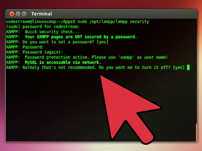 • توجه داشته باشید که این کار نام کاربری XAMPP شما را در lampp تنظیم می کند.